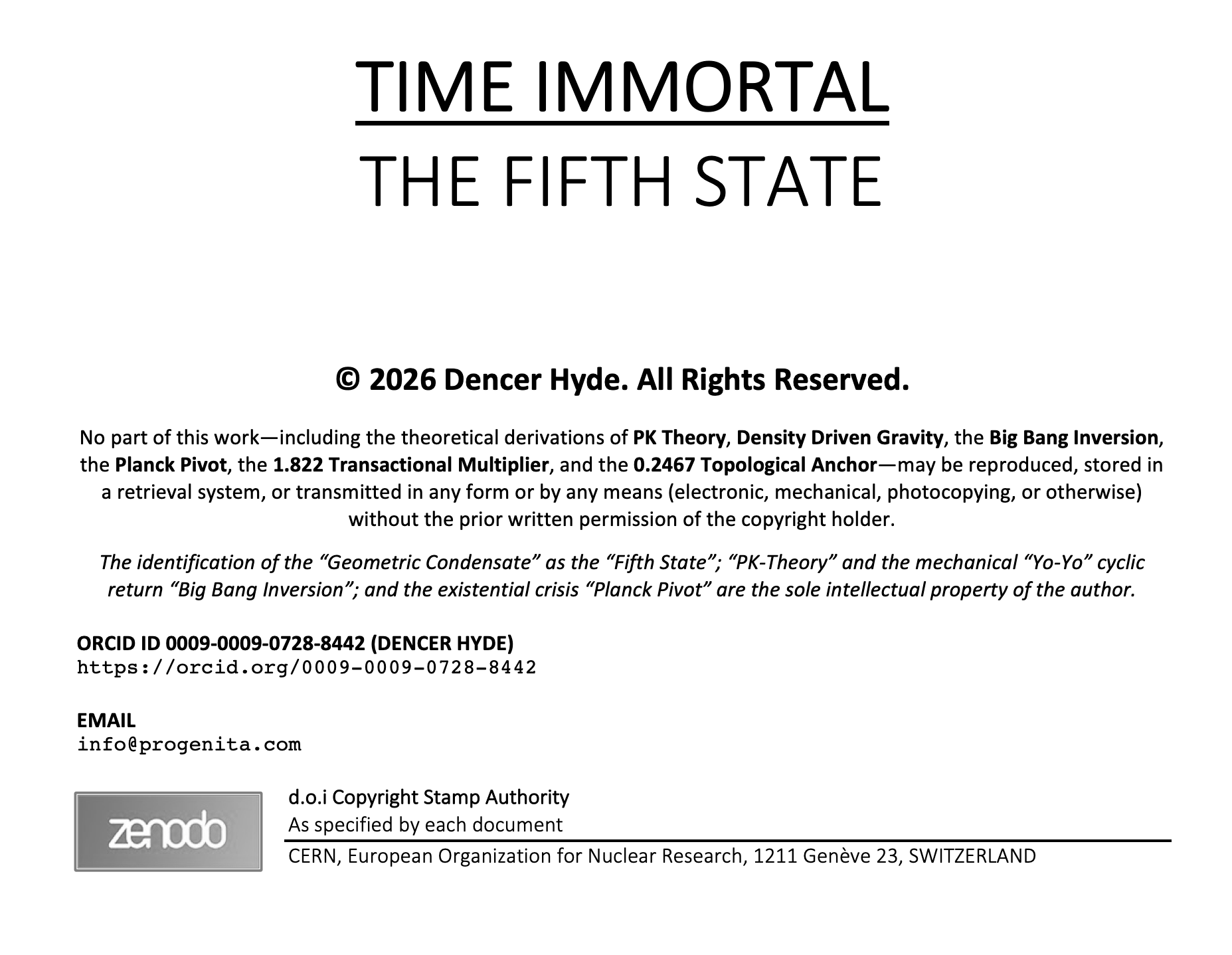 For your kind attention to my work we have the TIME IMMORTAL series that leads to the PAPERS - MATTER IS NOT ENOUGH, EQUANIMITY, SOLILOQUY, HARMONIA, ORISON and PENTATEUCH